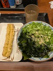 うどん札3枚で明太子無料&アプリのクーポンで野菜かき揚げ100円引き☺︎