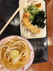 冷かけ2周目(第四弾)期間限定×2 日本列島近海に台風🌀がいるからか未だ蒸し暑さが残る関西つまり、冷かけ日和です♪海老とほたてのかき揚げと合わせて、期間限定コンビでいただきます🙏かき揚げ、前のより大きい?😅今回は大根おろしもすだちもなしで、プレーンな味を楽しんでから、ショリショリ天かすの味変で〆ました🎶冷かけはあと何回食べられる?次は