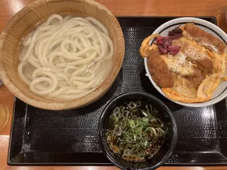 毎月1日は釜揚げ半額の日 待ちに待ってたやって来た〜毎月1日は釜揚げ半額の日〜 この日に行かなくていつ行くの! 本日は、少し遅めの夜8時それでも長蛇の列いつもながらすごいなぁ〜少し待ったけどなんくるないさ〜 頼んだのはカツ丼セット〜丸亀のカツ丼たまらない〜 本日も美味しくいただきました