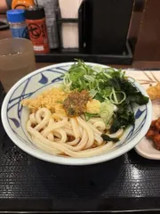 肉汁つけうどん2玉温・温玉を注文しました🥢温玉は肉汁つけうどん楽しんでから、途中から使用します😙肉汁にうどん・🐢ネギ・わかめ・生姜・七味を入れて食べました🤤肉汁を楽しんだ後味変しましたどんぶりに🐢ネギ温玉をトッピングしてしび辛ラー油を周りに入れました😀温玉に🥢を入れ、黄身が出て美味しかったです🤤辛肉