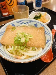 冷かけシリーズ第三弾とうどーなつチョコ味♪ 食べたかったきつね冷かけうどん仕事終わりに行ってきました♪実は、丸亀さんできつねうどんそのものを食べるのは初めて、甘辛のお味濃いめのおあげですね。今回はすだちはナシにしました!今日も蒸し暑かった関西、ひんやり冷かけは安定の美味しさ♪麺を1/3くらい残してから、トッピングで味変→おろし生姜、ネギ、わか