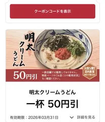 クーポン ちょうど明太クリームうどんたべたいと思ってたとこなんです、!!!!安く食べれて嬉しいですーー