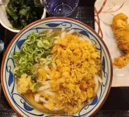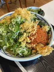 天カス乗せて『たぬき冷やかけうどん』 今日は久しぶりに『天カス』乗せて『たぬき冷やかけうどん』です。丸亀製麺さんの「きつね」が大好きなのですが、今日は『うどーなつ』を買うと決めていたこともあり、予算も考えてたぬきにしました。期限あるなか、気が済むまで冷やかけうどんは食べておきたいです😊