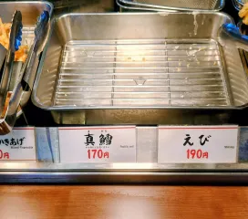 新しい天ぷらメニューがありました、かき揚げ総選挙のやつは無かった🙍真鱈天・細竹天(真鱈天がトレーに無かった)今日はおろし無料🆓クーポン使用しましたので注文しませんでした😀(年明けうどんの大🦐天を天つゆで食べる為)真鱈天がどういうやつか見たかったです😧