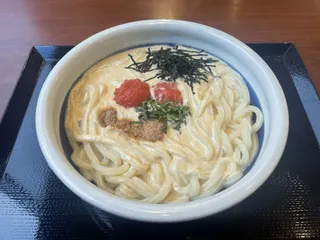 🤣無欲の時に限って🤣 明太クリームうどんをいただきました🥢ぶっかけうどんのお得なキャンペーン期間中ではありましたが、先日店舗で見かけた明太クリームうどんも早く食べてみたかったのでこちらを選択🙏濃厚なクリームベースのおだしはもちもちの釜抜き麺とも凄く合い、かつおの粉や大葉の香りが全体的に良いアクセントになっていました☺️お