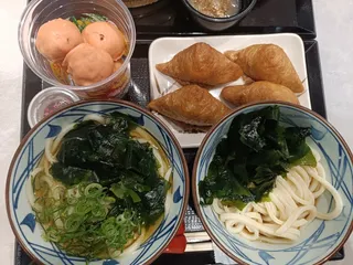 いなり山 1つ買うと、もう1つ無料シリーズ、毎回楽しみにしています。今回はおいなりをいただきました。丸亀製麺さんのおいなりは、油揚げに染みた丁度いい甘さの味付けが、中のご飯にも染みておいしいです!いつもは1つで我慢している事が多いですが、今回はありがたく4ついただきました。気づくとお盆の上にいなり山が4つで幸