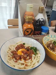 自宅で丸亀 今日は昨日、買った生うどんでなんちゃって明太釜玉うどん(食べられる明太ラー油)を食べました。結構、たっぷり入れたので少し辛かったが美味しかったです。