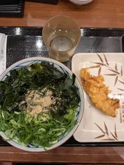 かけうどんにかしわ天です😊 普段は小なので、今日、注文の時に店員さんから『小ですか?』と先に聞かれてしまいました😊顔を覚えてくださったんですね~。有り難いです。嬉しかったです😊 今日のレシートガチャは大根おろし無料クーポンでした😊🎯感謝感謝です😊