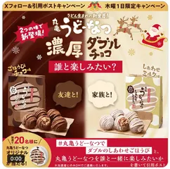 丸亀製麺のX公式アカウントで、木曜日限定開催の「 丸亀うどーなつでダブルのしあわせごほうび キャンペーン」の2週目がはじまっています。 ①@UdonMarugameをフォロー ②#丸亀うどーなつでダブルのしあわせごほうび を付け新作まずはどちらを食べたいかを書いて「引用」ポスト&