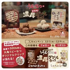 濃厚ダブルチョコ出たキャンペーン 1日目 Xの公式アカウントでの、「丸亀うどーなつに濃厚ダブルチョコ出たキャンペーン」の1日目がはじまりました。 フォロー&リポストで、抽選で500名に丸亀うどーなつオリジナルクリップが当たります! プレゼントは、オリジナルクリップでしたね😊