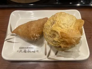 祝オープン🎉 ドラゴンボールキャンペーンが明日までなので元気玉おむすび食べ納めしてきました🍙今回はかけうどんにちくわ天ぷらに元気玉おむすびを注文しました🍙昔丸亀製麺オープンした時に広告と一緒に割り引き券をもらった記憶があり今回もオープンで何かクーポン配布してるかなと期待して来店しましたが、思ってた以上のクーポンで