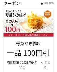 またまた当たりました🎯 野菜かき揚げ100円引クーポンゲットしました🎯