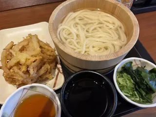 今日はかき揚げのクーポンの期限が近かったので食べに来ました😊もう仙豆はないとわかっているけど何故か探してしまう😅またいつか出会いたい✨かき揚げには釜揚げうどんが合いますね〜☺️しかも揚げたて!つゆに付けたり天つゆに付けたりだしソースをかけたり…色々楽しめて大満足でした♪そして今日行った店舗にこんなお