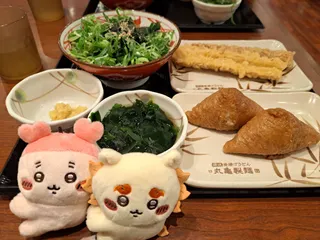 今日は初めてのかけ小~わかめとネギは盛り盛りで~ちくわ天、おいなりさん😁美味しく頂きました〜😋