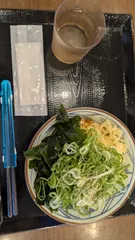 今朝起きると外は霜が降りてました🥶丸亀製麺に来た頃には上着脱いでも丁度良い晴のいいお天気に😚 久しぶりのぶっかけ温クーポンの50円引き使いました😊