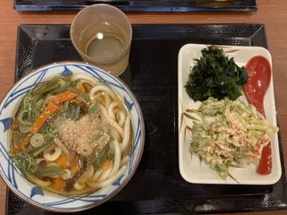 山菜うどん並・ごはんを注文しました🥢 山菜うどん並・ごはんを注文しました🥢山盛りあさりうどん注文が多い印象でした🙄うどんメシ調理で店内が中華料理店の匂いになっていました🥡🍳👲山菜うどんに🐢ネギわかめをトッピングしました😙山菜をごはんに移動し、残ったうどんで🐢ネギ・わかめ・天かす・生姜・七味トッピングして天丼のたれをかけて旨甘かけうどんに