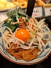 旨辛肉盛りニラ玉ぶっかけ! 見つめ合うと素直に!(/・ω・)/おしゃべりできない!(/・ω・)/ 今日は丸亀製麺で期間限定の旨辛肉盛りニラ玉ぶっかけを食べてきました!🫠 ニラとニンニクが入ってるので、TSUNAMIの様な美味しさが口いっぱいに広がりました! でもお口の中に匂いが残ってし
