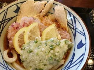 久しぶりの冷かけ 丸亀でサクッとお昼をすませちゃおう❣️と出かけました。ちようどうどん札10枚たまったので、冷かけを。そして、天ぷらのところに海老とほたてのかき揚げがある‼️即いただきました。定番の野菜かき揚げより、カラッとしてて軽い口当たり(気のせい?)えびは大きくて存在感あったけど、ほたてはベビーちゃんだったから