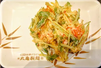 三つ葉小エビかき揚げ・無料🆓トッピング小鉢を作ってみました🥢三つ葉小エビかき揚げ130円でコスパいいかな😙今回明太クリームうどんでしたので単体で食べました😀上左側から🐢ネギわかめわさび出汁醤油小鉢・🐢ネギわかめ天つゆ七味プース・🐢ネギしび辛ラー油天かすを作ってみました😀三つ葉小エビかき揚げに🐢ネギ